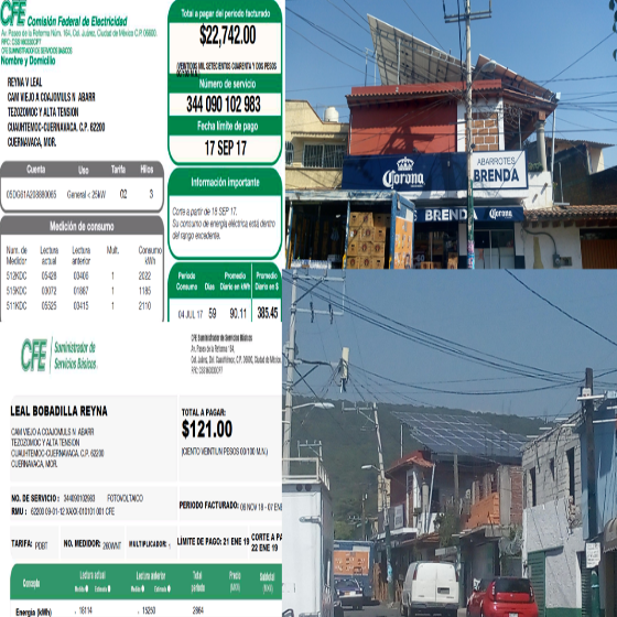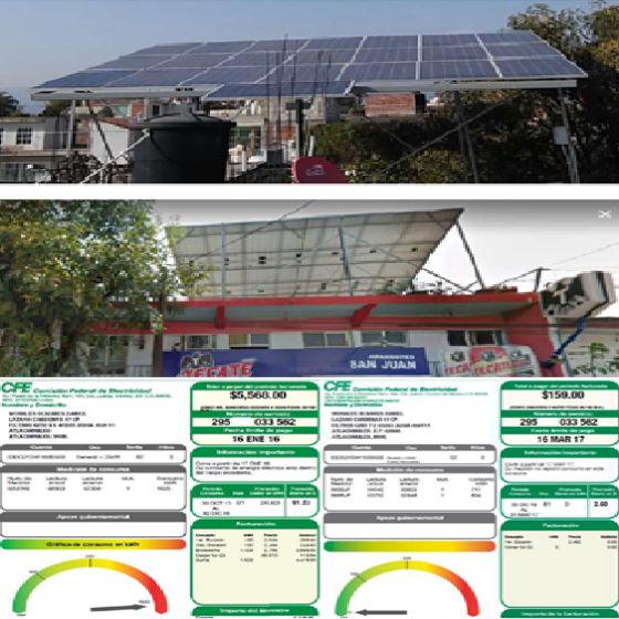 En una tienda de abarrotes ubicada en la ciudad de Jiutepec, Morelos, se realizo una instalación de paneles solares, la cual tenia una tarifa 02 y tuvo una reducción del 98%.