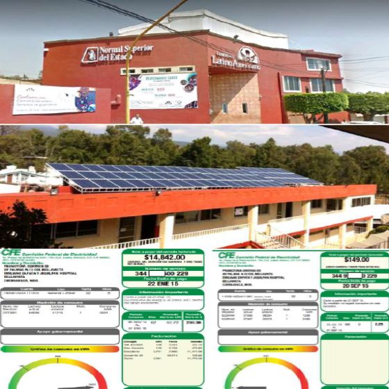 Se realizo una instalacion de 30 paneles en una escuela de Ayotla donde se redujo hasta el 98.5% en el recibo de luz.